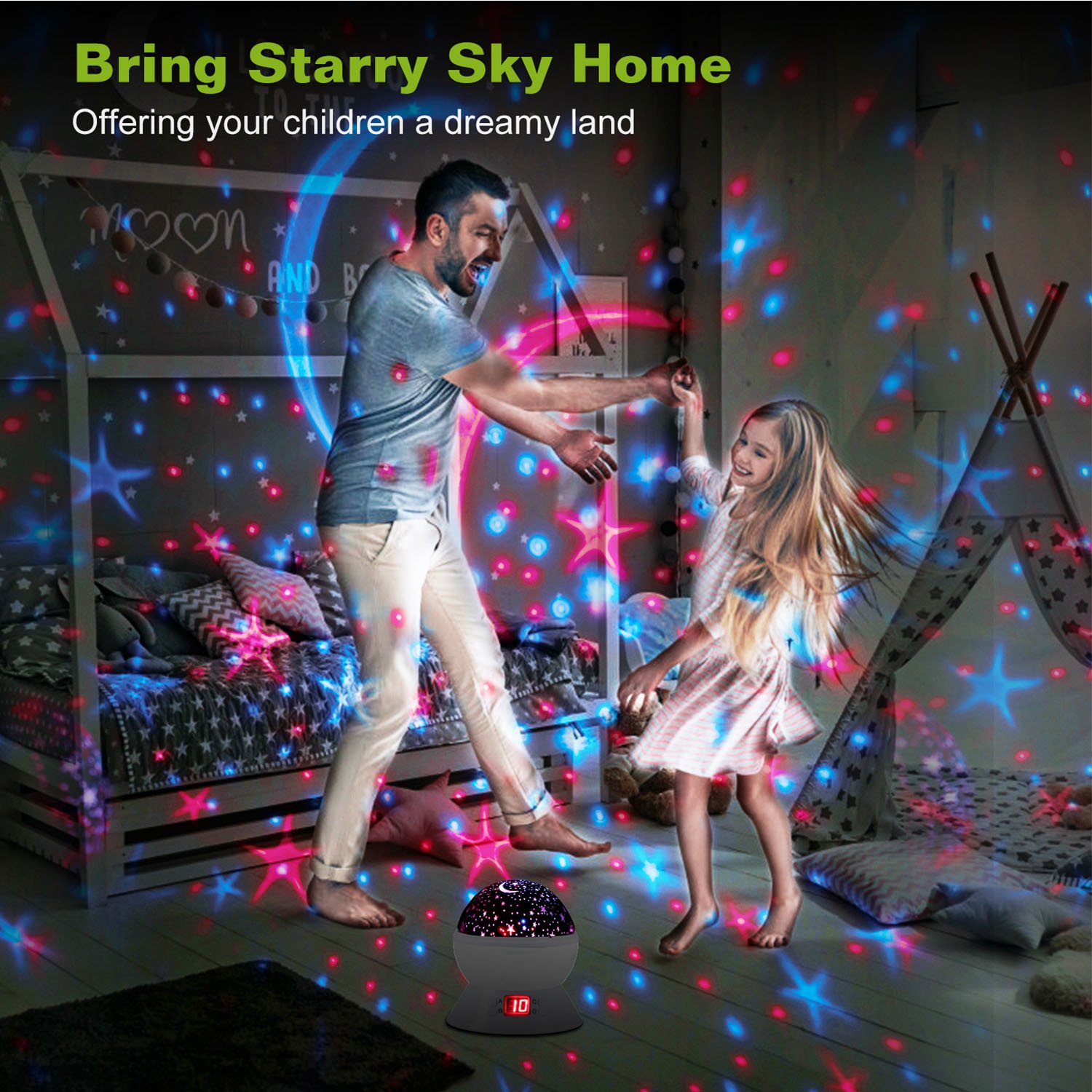 LED Projector Lamp Kids Night Light Star Moon Projection Night Lamp 360 Degree Rotation Timer