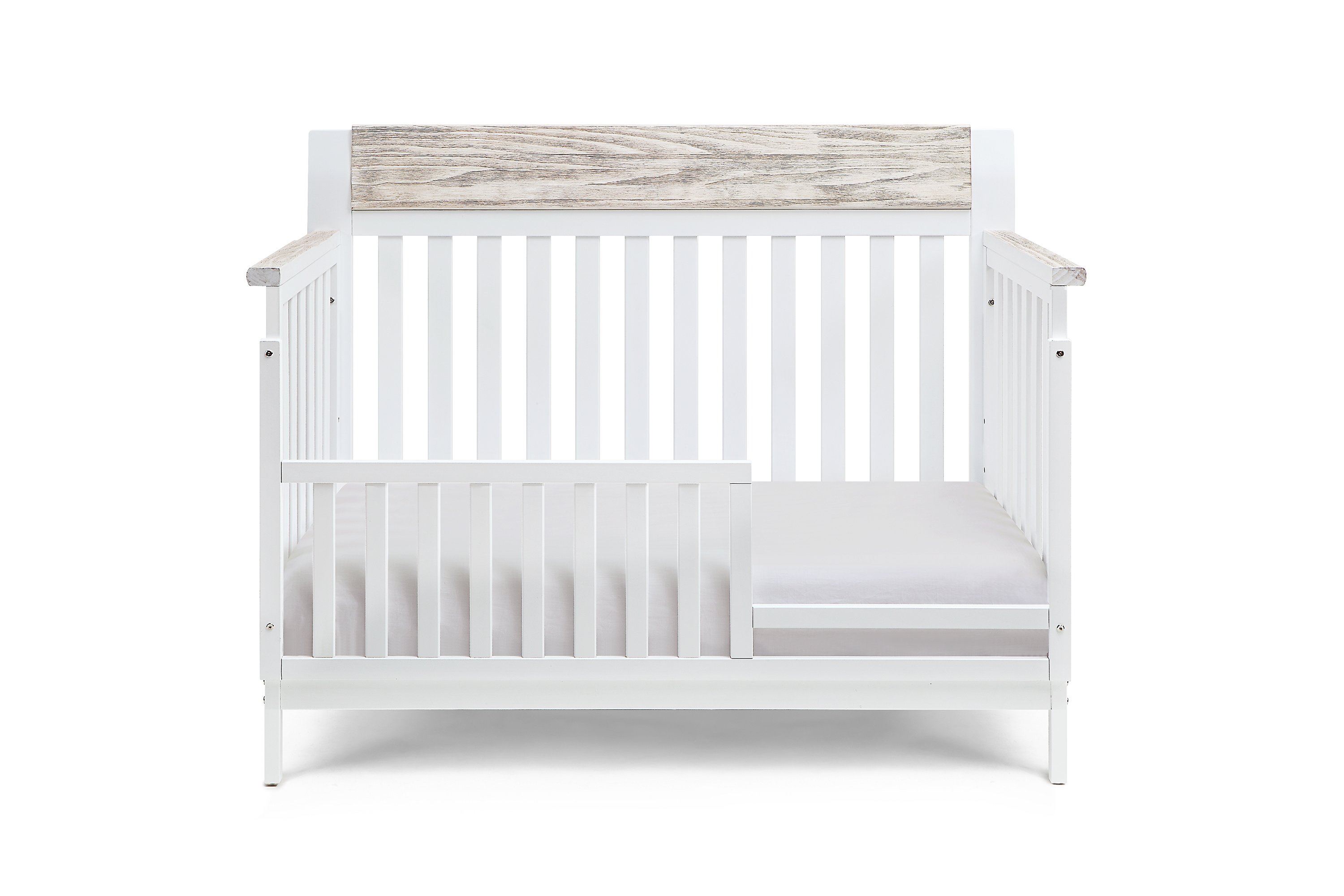 Combined with refined rustic wood finishes and classic veneers, the Hayes collection from offers a modern take on an inspired rustic nursery. With contrasting wire brushed wood panels, the Hayes presents a stylish and safe haven for your child for years to come. The 4-in-1 Crib grows with your child, easily converting to a toddler bed, day bed, and full size bed with the addition of the guard rail and conversion kit. The colors are White & Natural.